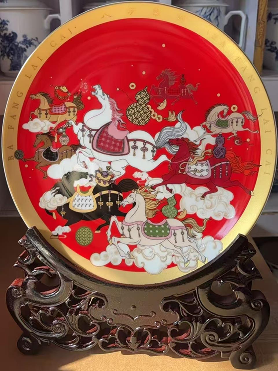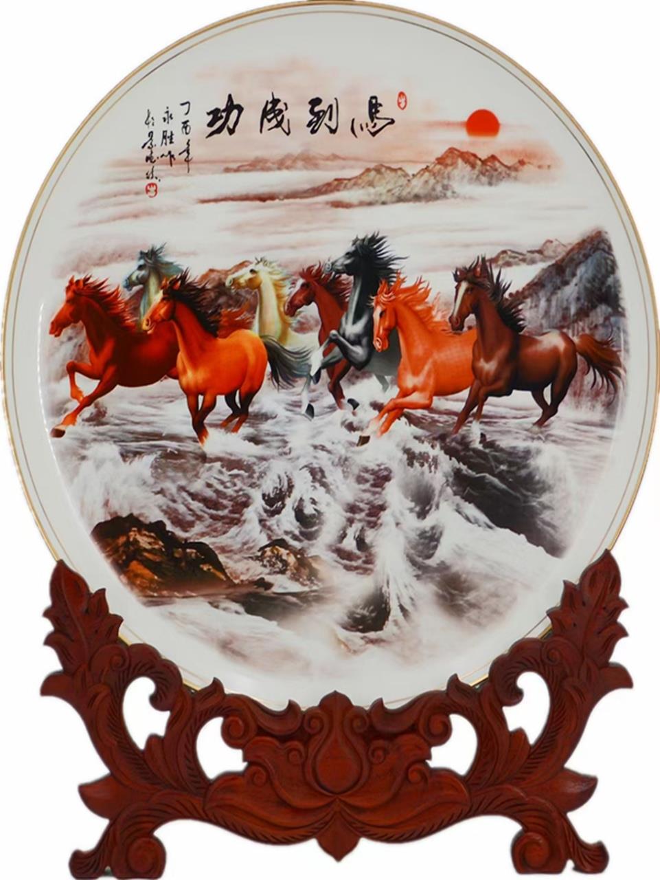 16吋《马到成功》八俊雄锋陶瓷艺赏盘