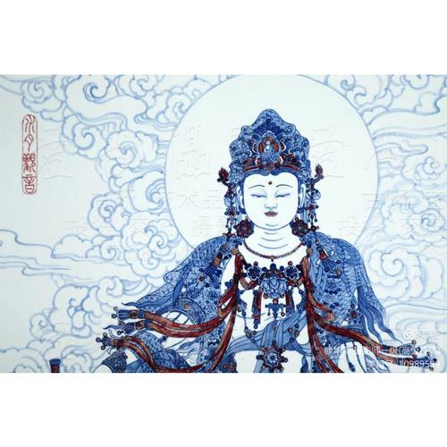 99cmx105cm,青花釉里红瓷板画